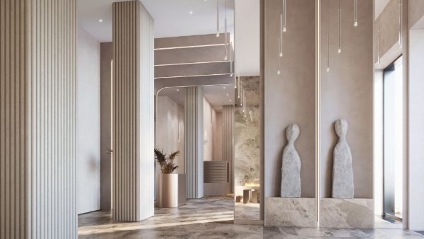 В проекте 1385 квартир и апартаментов площадью 22–105 м². Есть планировки с угловыми окнами, объединённой кухней-гостиной, гостевыми гардеробными, несколькими санузлами. В помещениях панорамные окна, высота потолков — от 2,7 до 3 м. Предусмотрены места для кондиционеров.