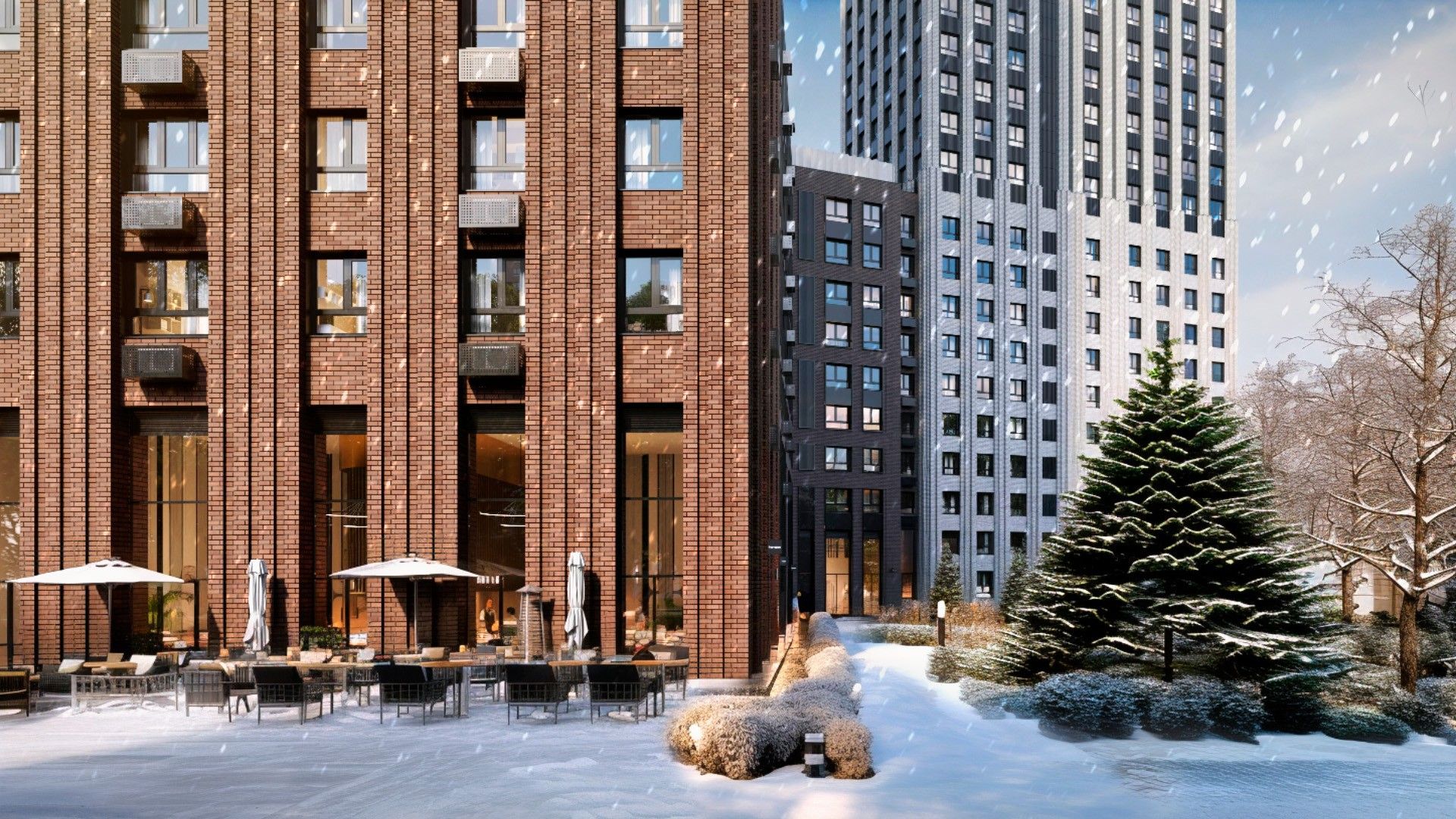 На первых этажах будут продуктовые магазины, кофейни, сервисы, в корпусе 1.5 — детский сад. В подземном паркинге поместятся 228 автомобилей, в одной из секций можно приобрести кладовые. В закрытом дворе предусмотрены игровые комплексы, площадки для воркаута, зоны отдыха.